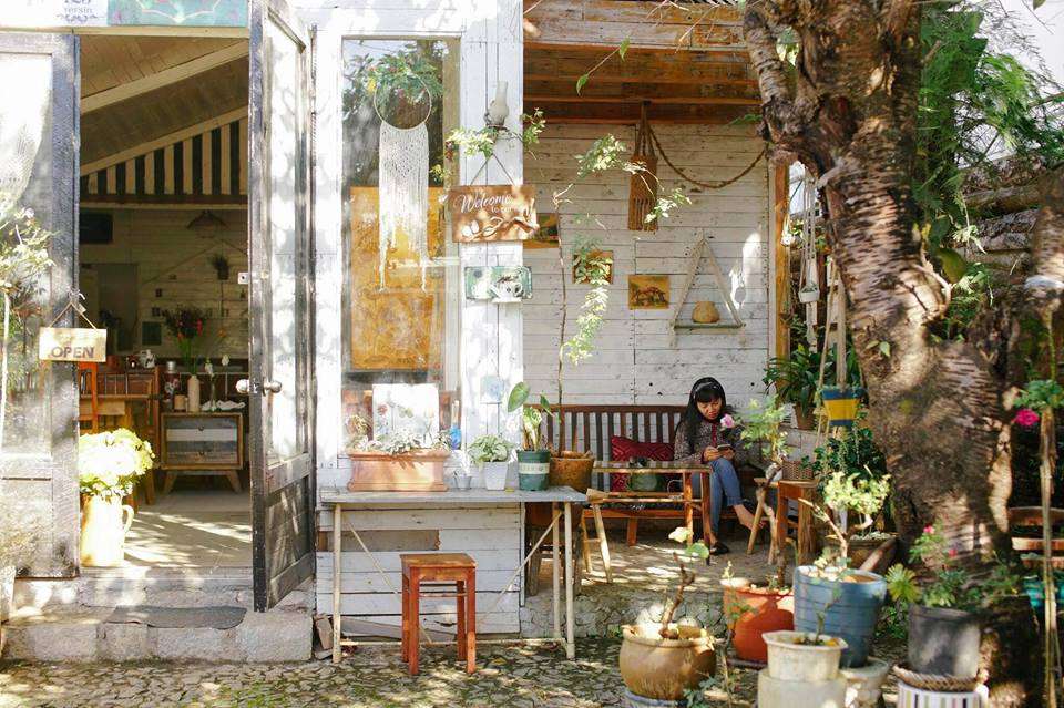 Bước vào trong mà cứ ngỡ như đang lạc vào trong thế giới cổ tích hay ngôi nhà nhỏ ở miền Tây nào đó đẹp và yên bình lắm. Ngôi nhà gỗ xinh xắn bên trong được bao bọc giữa khu vườn xanh tươi. Dừng lại một chút hít hà hương đồng cỏ nội, hương gió phả vào trong làn da, mái tóc, ngắm các loài cây và hoa đặc trưng của phố núi.